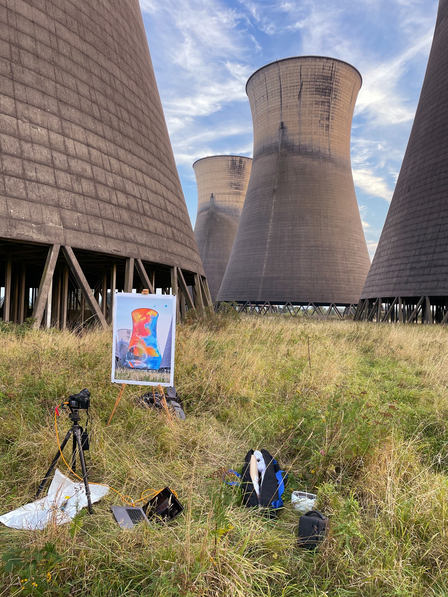 Most of the locations I have photographed are physically in the public domain, and indeed dominate their surroundings through their huge scale, but have restricted access. They are thus imposed on the people living nearby - it is impossible not to see them - but it is impossible to engage with them, use them, or sometimes even approach them. They are often part of the energy infrastructure - arguably the biggest issue of our time - and as such tend to be the subject of controversy. Painting on prints of these huge constructions is a way of reclaiming and engaging with them.